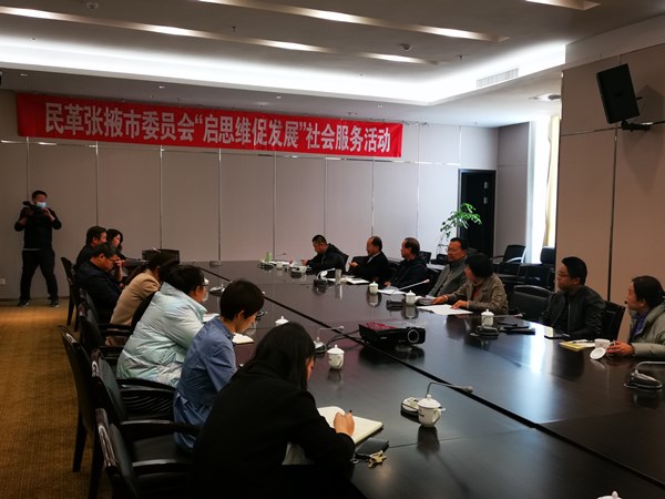10月28日,民革张掖市委会组织民革张掖市企业家联谊会、民革张掖市临泽县支部,在张掖市河西印象文化旅游股份公司,以开展“创业经验分享,推动企业发展”为主题,开展社会服务活动。民革张掖市委会副主委张兴锋,临泽县政协副主席、民革张掖市临泽支部主委赵天鸿,中共临泽县委统战部副部长李保荣,民革张掖市企业家联谊会会长汪振根、财税专家、企业管理人员共16人参加了活动。