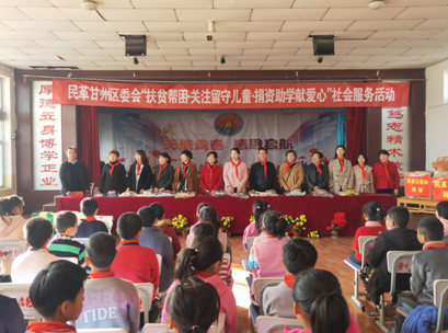 激励儿童献爱心,捐助留守儿童。关爱留守儿童,让他们感受到温暖,让他们感受到爱从未离开,让更多的留守儿童感受到来自社会各界的关爱和温暖,民革甘州区委会为安阳乡中心学校10名留守儿童分别赠送了双肩包一个、兵乓球拍一副、手套一双、图书一套,激励他们刻苦学习,勤奋上进,努力成为社会有用之才。