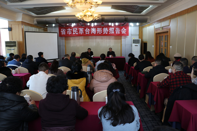 12月4日上午,民革兰州市委会举办台海形势报告会,会议特邀兰州市台办主任付晓利做专题报告,民革甘肃省委会秘书长姜玉成、组织处处长谢敏出席会议。会议由民革兰州市委会副主委杜擂升主持,民革兰州市委会副主委马军参加会议。