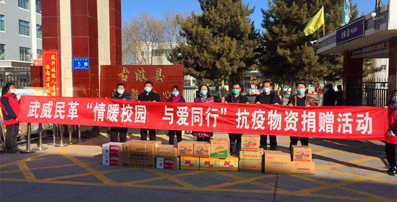 民革武威市委会、民革武威市直属一支部向古浪县职教中心捐赠了价值1万余元的医用口罩、医用酒精、84消毒液、喷壶等抗疫物资。本次活动得到了武威市教育局的大力支持。