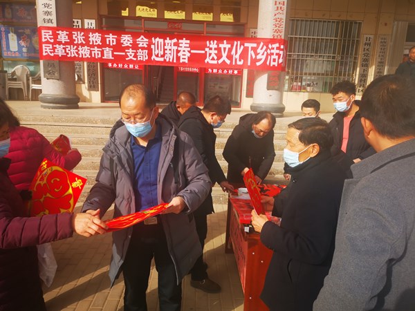 “迎新春送文化下乡”活动是民革张掖市委会持续五年在全市开展的社会服务品牌活动。活动在丰富农民文化生活的同时,也为推动农村群众文化建设,构建社会主义和谐社会贡献了民革力量。