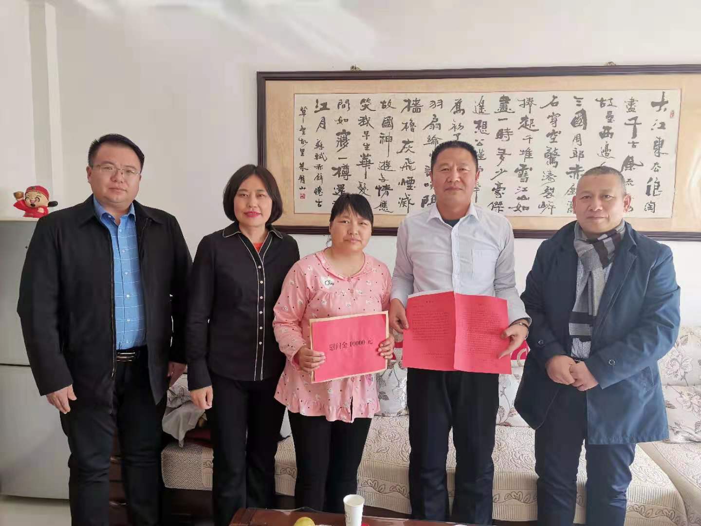 2月7日,民革酒泉市委会主委靳巧荣、副主委党立文赴民革党员龚玉金家中,为妻子身患重病、孩子上大学而致贫的龚玉金送上了民革中央万鄂湘主席署名慰问信和民革中央“博爱·牵手”中山博爱基金慰问金10000元。