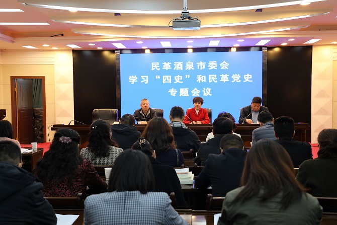 4月17日,民革酒泉市委会召开学习“四史”和民革党史专题会议。民革酒泉市委会主委靳巧荣主持会议,副主委党立文、王伟出席会议。
