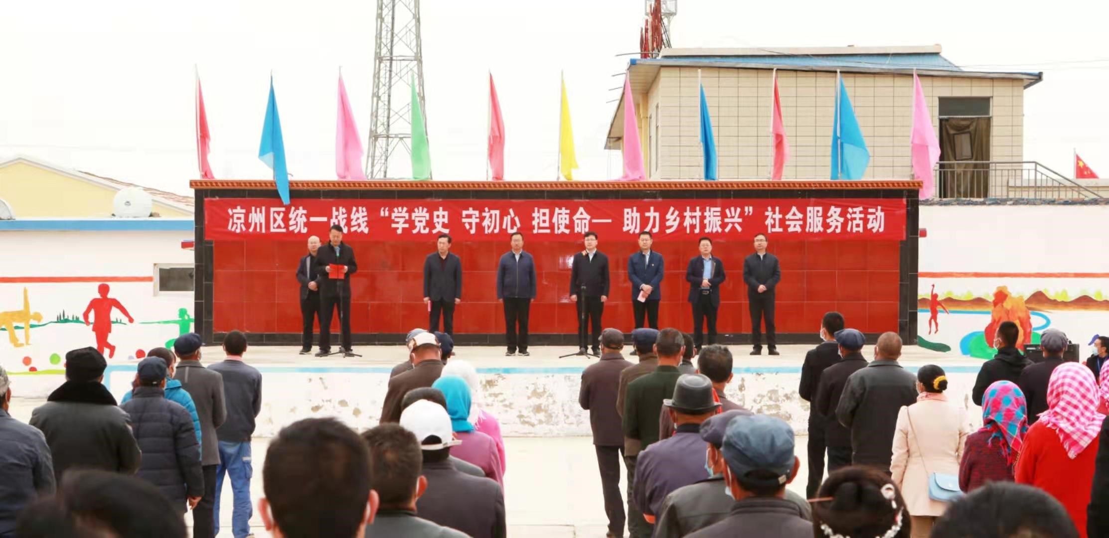 4月26日,民革武威市凉州区委会联合民盟凉州区委会、民建凉州区委会、民进凉州区委会、农工党凉州区委会、九三学社凉州区委会和凉州区工商联赴武威市凉州区康宁镇开展“学党史、守初心、担使命—助力乡村振兴”社会服务活动。中共武威市凉州区委统战部部长陈国锋应邀出席活动并讲话,中共武威市凉州区委统战部、各民主党派和工商联领导干部共26人参加活动。