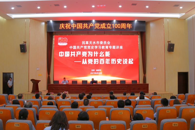 6月26日,民革天水市委会开展以“不忘合作初心,继续携手前进”为主题的中共党史学习教育,民革天水市委会主委魏芳、专职副主委窦文及各支部党员50余人参加活动。