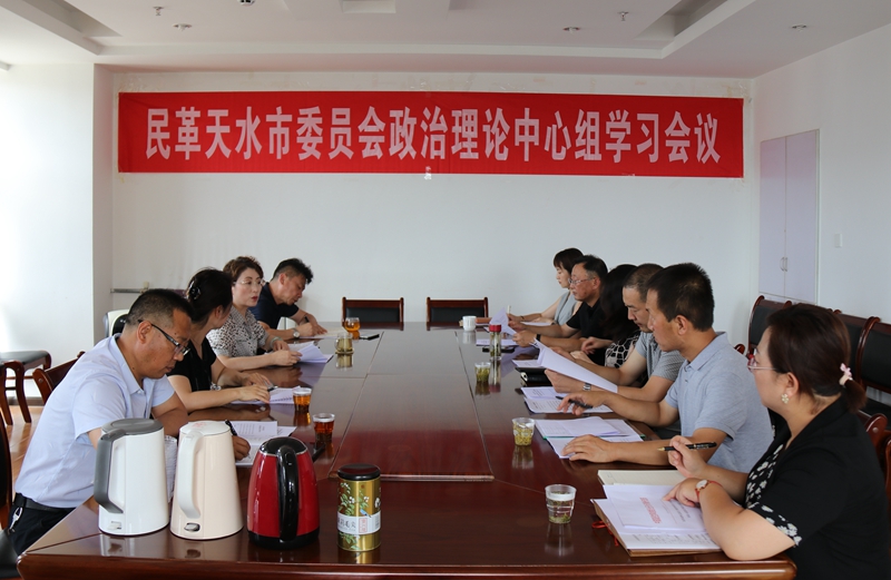 7月6日,民革天水市委会召开理论学习中心组学习会议。民革天水市委会主委魏芳出席会议,专职副主委窦文,副主委罗荣昌、张莉萍及各基层支部主委参加会议。