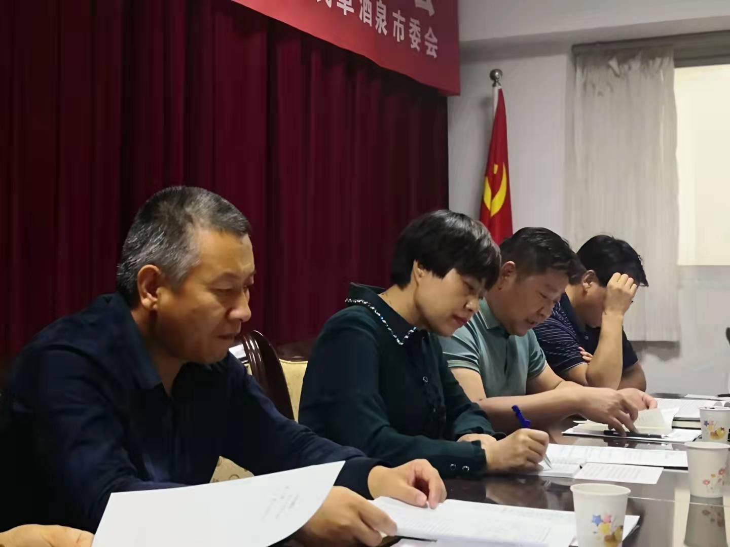 9月2日,民革酒泉市三届二十六次全委(扩大)会议召开。民革酒泉市委会主委靳巧荣主持会议,民革酒泉市委会副主委党立文、王伟出席会议,民革酒泉市委会委员及各直属支部主委、副主委、秘书长参加会议。