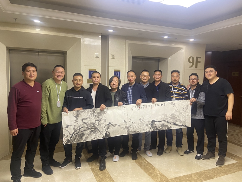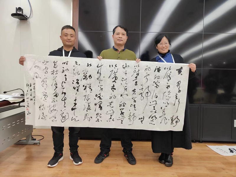 云智平(左三)与培训班学员共同创作《中和之美》赠送中央社会主义学院