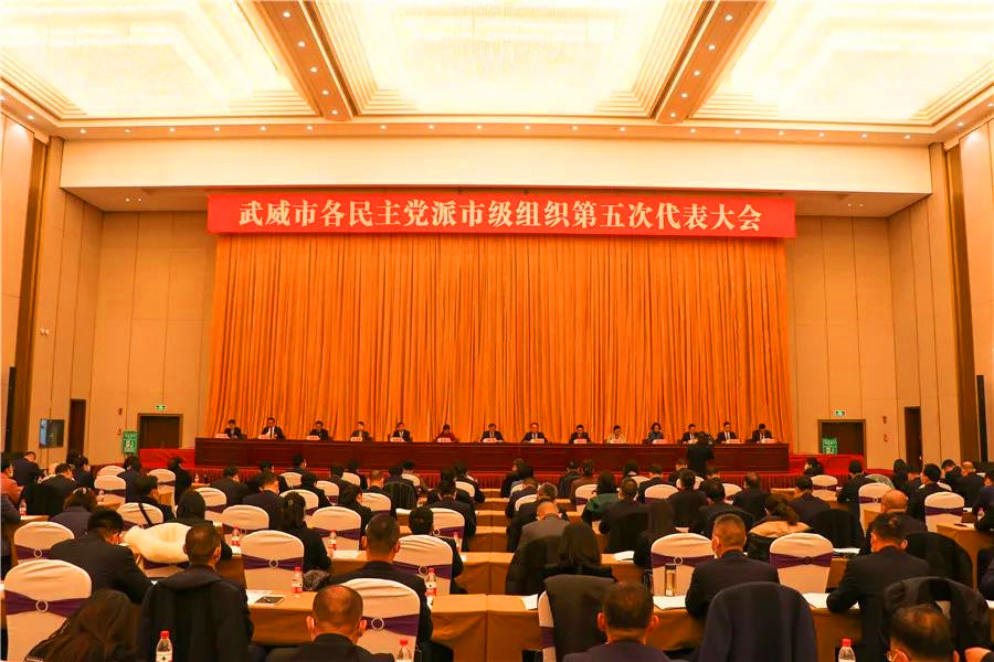 11月22日,武威市各民主党派市级组织第五次代表大会开幕会议在武威召开。中共武威市委书记柳鹏出席会议并讲话,中共武威市委副书记、代市长王国斌主持会议。各民主党派省委会领导应邀出席会议。民革甘肃省委会专职副主委袁斌才代表省级民主党派致贺词,武威市副市长陈一夫代表武威市各人民团体致贺词。