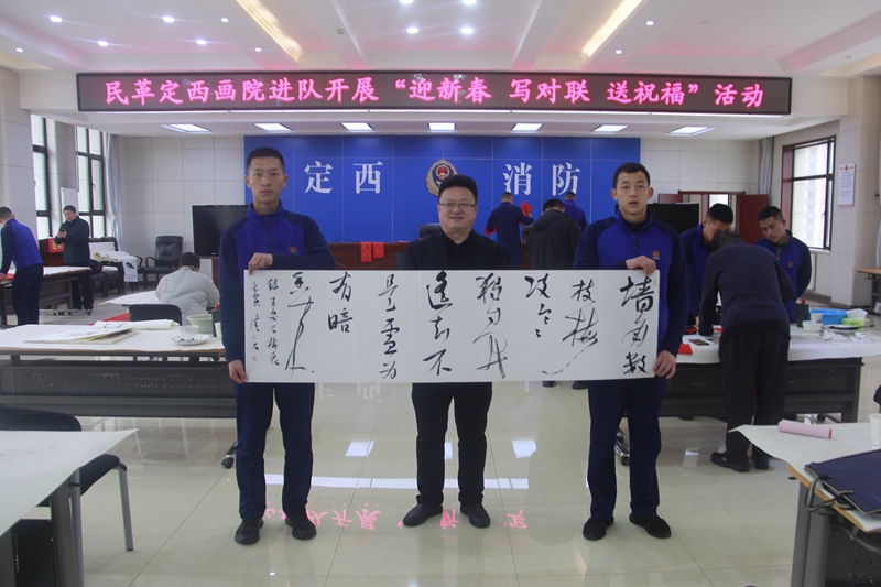 为弘扬中华民族传统文化,营造欢乐祥和的节日氛围,丰富消防救援人员春节期间的文化生活。1月27日,民革定西市委会携手定西华夏教育集团,组织部分书画老师来到定西市消防救援支队为消防救援人员写春联送祝“福”喜迎新春佳节。