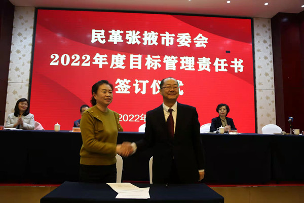会议期间,民革张掖市委会与民革张掖市直各支部及民革甘州区委会签订了2022年度工作目标管理责任书。