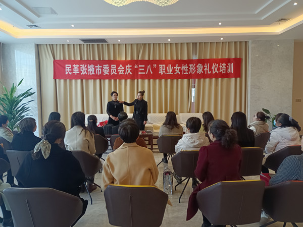 3月5日,为迎接即将到来的第112个“三八”国际劳动妇女节,民革张掖市委会组织开展“倡导文化礼仪 提升素质形象”主题活动,特别邀请了张掖市文化馆高级化妆师、副研究馆员高燕为民革女党员进行职业女性形象礼仪培训,40多名女党员参加了活动。