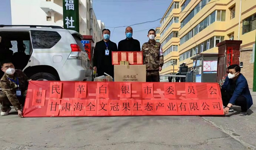 民革党员张乾栋代表甘肃国林公益基金会向白银市白银区红十字会捐赠价值20多万元的抗疫物资;民革党员师海全以民革白银市委会的名义向景泰县红十字会捐赠价值4万元的文冠果茶;民革党员吴喜凤向社区防控点捐赠价值5000元的抗疫物品和慰问品;民革党员马保伟向白银市白银区红十字会捐款1000元。