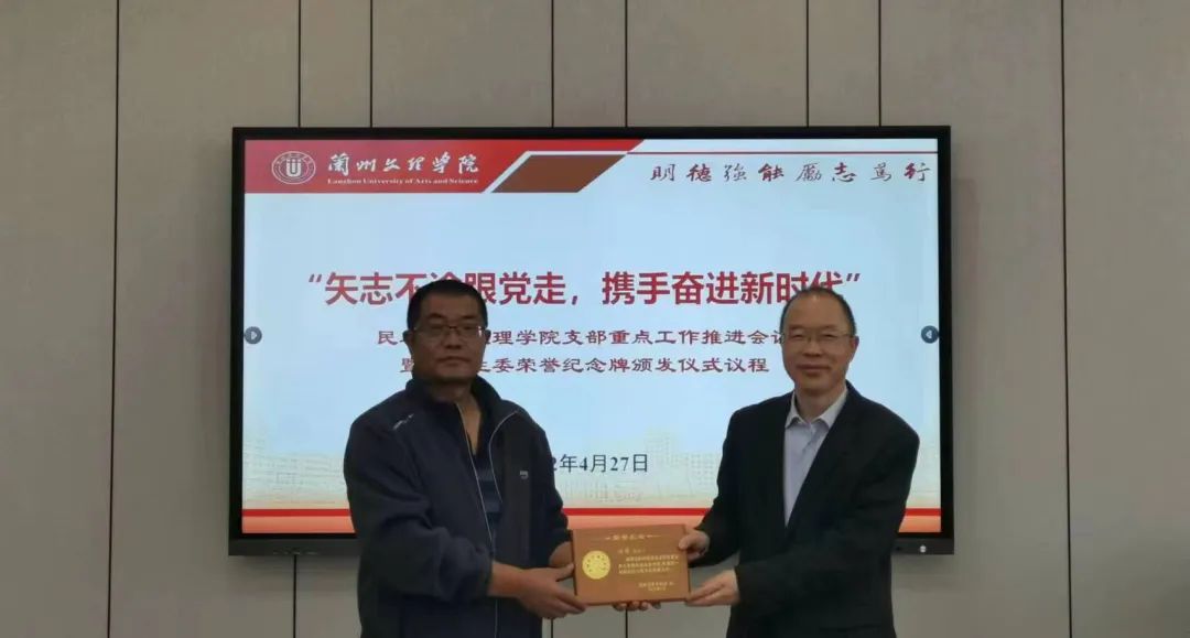 会议期间,普登学向赵勇颁发了荣誉纪念牌。民革甘肃省委会兰州文理学院支部全体党员参加会议。