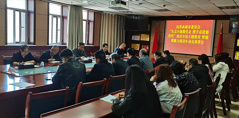 5月15日,民革武威市委会召开“矢志不渝跟党走、携手奋进新时代”政治交接主题教育暨履职能力建设年动员部署会。民革武威市委会主委严世明主持会议并讲话,市委会委员、监委会委员、民革凉州区委会及市委会直属各支部班子成员参加会议。