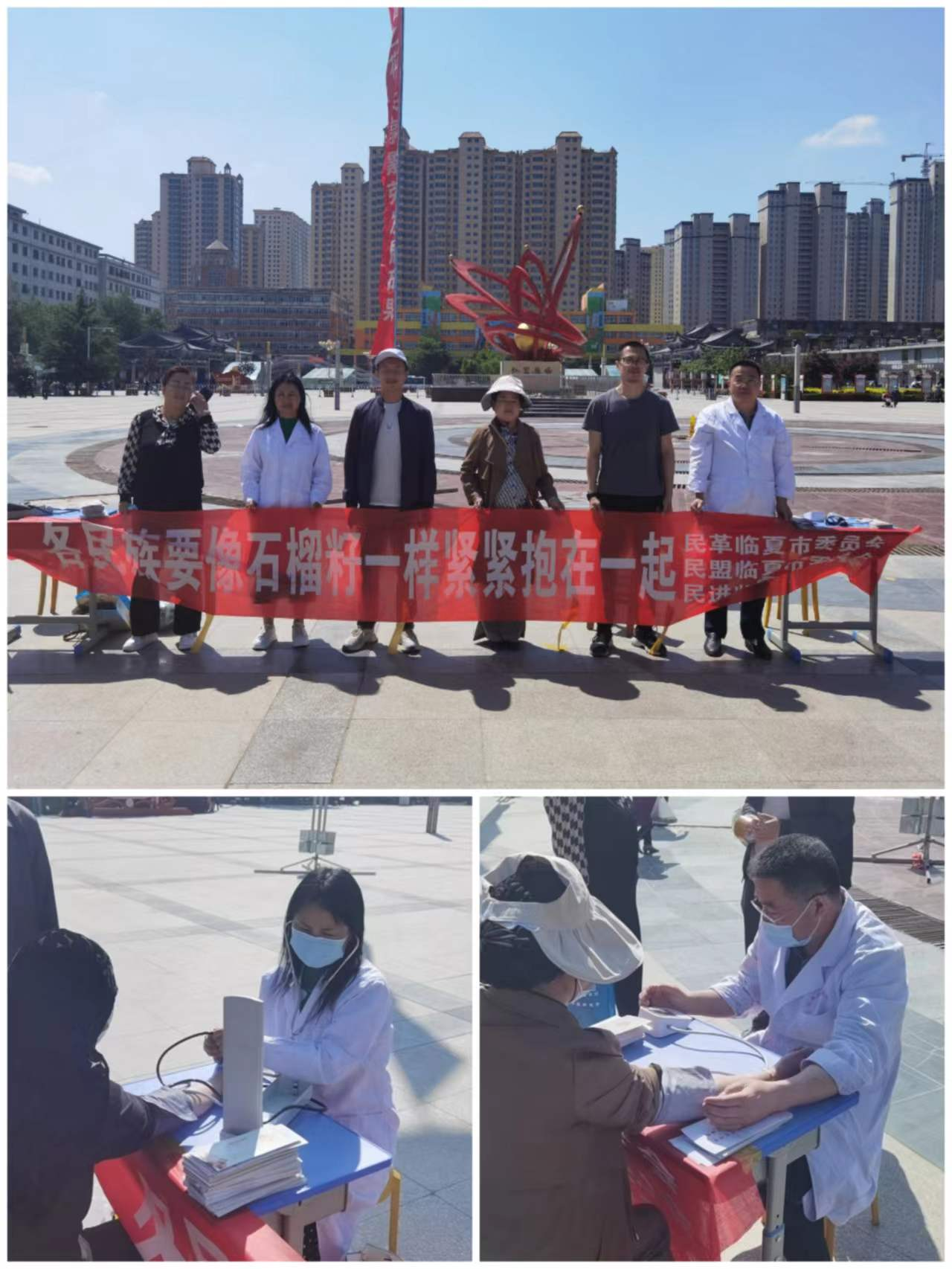 5月24日,民革临夏市委会联合民盟临夏市委会、民进临夏市委会在临夏市红园广场开展第19个民族团结进步宣传月集中宣传活动。民革党员中的医务工作者积极参加宣传活动并为群众免费义诊。