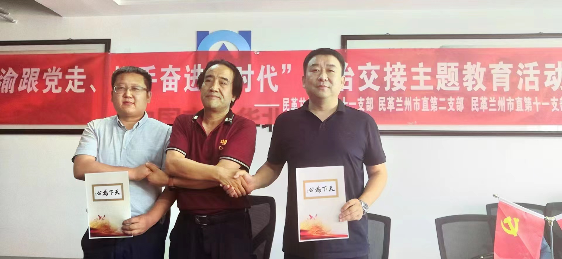 会议学习了民革中央主席万鄂湘在民革十三届十八次中常会上的讲话精神,学习了中共甘肃省第十四次代表大会精神,学习了民革甘肃省第十三次代表大会精神,学习了民革甘肃省委会、兰州市委会2022年履职能力建设年实施方案等文件精神;宣读了三个支部联合制定的“矢志不渝跟党走、携手奋进新时代”政治交接主题教育活动实施方案。