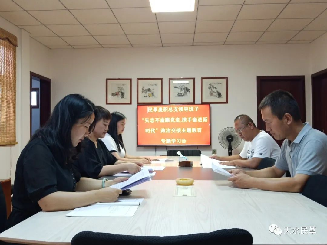 8月7日,民革天水市委会麦积区总支召开“矢志不渝跟党走、携手奋进新时代”政治交接主题教育学习会。民革天水市麦积区总支班子成员参加会议。