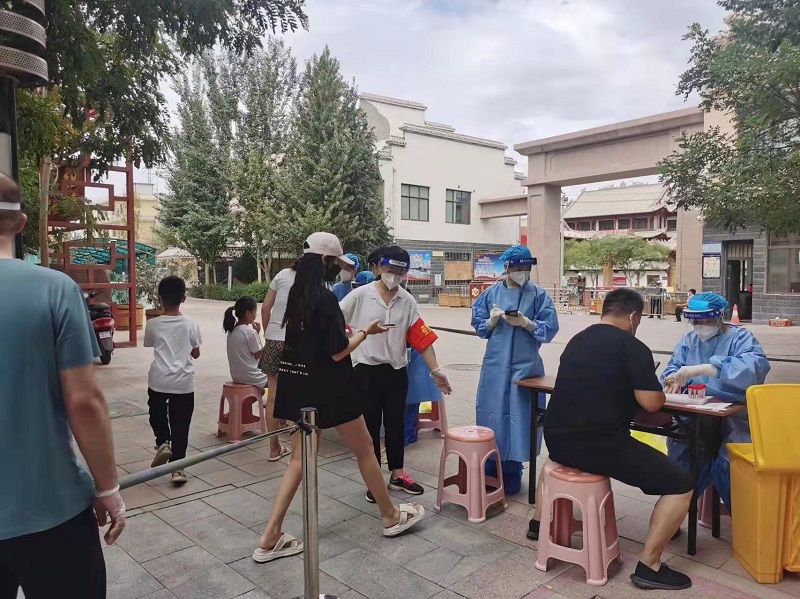 “同志,请您带好口罩,保持1米以上安全距离,提前准备好身份证和健康码”“大哥,您暂时不能出小区,现在处于全城静默状态,为了您和家人的健康,请您配合一下。”在敦煌市各小区核酸采样点上,这样的对话,民革党员马小龙、唐耀彬、豆永山、魏玲、马占军、贺东亮、刘巍、李霞晖、窦雪峰、郝懿等已重复了成百上千遍,虽然嗓子已经沙哑,汗水已经湿透衣服,但当听到居民群众“大热天你们也不容易啊,辛苦了!加油!”这样质朴而又暖心的话,又觉得一切辛苦都是值得的。他们严把小区出入通道,主动做好解释、疏导、劝返工作,积极开展防疫政策宣传,切实筑起小区坚固的安全防护屏障。