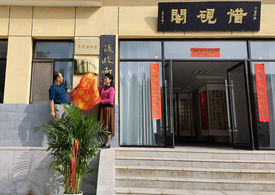 在揭牌仪式上,顾克伟介绍了书画院产生的背景及组建经验,对书画院未来的工作提出了希望和要求。杨爱玲和王汉峰共同为民革白银市中山书画院揭牌。(李春丽)
