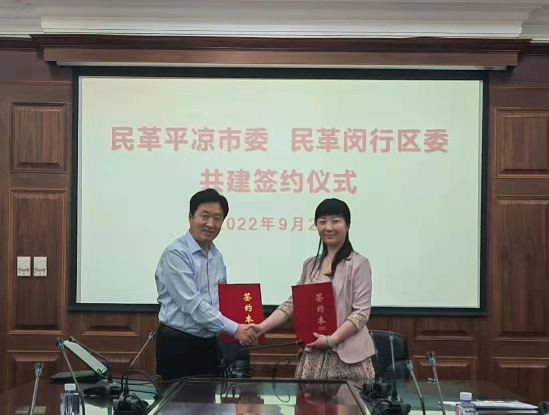 9月27日,民革平凉市委会和民革上海市闵行区委会举行合作共建签约仪式。民革平凉市委会主委白玉、民革上海市闵行区委会主委余嬿出席签约仪式。