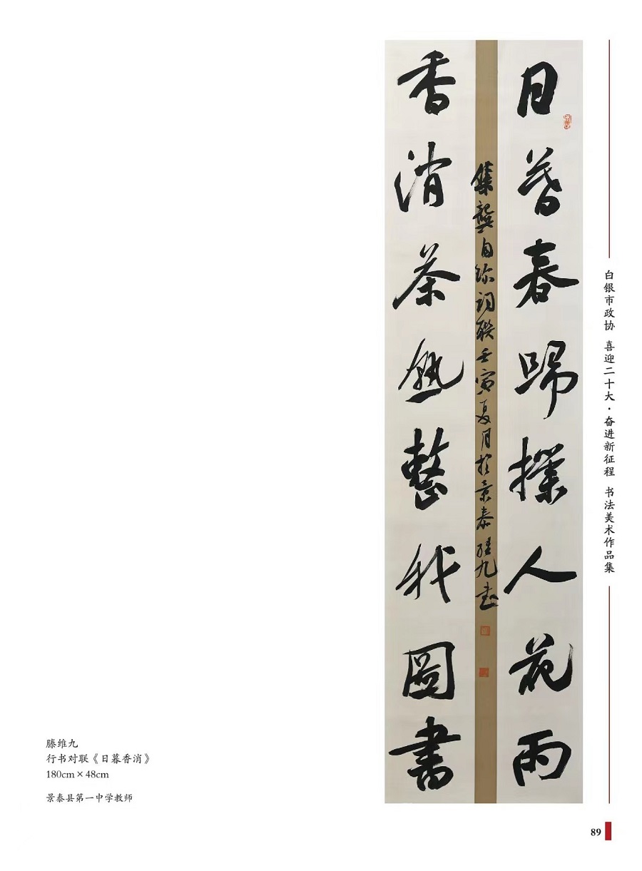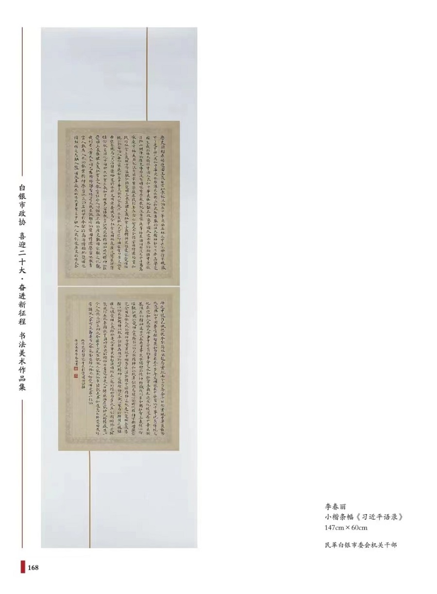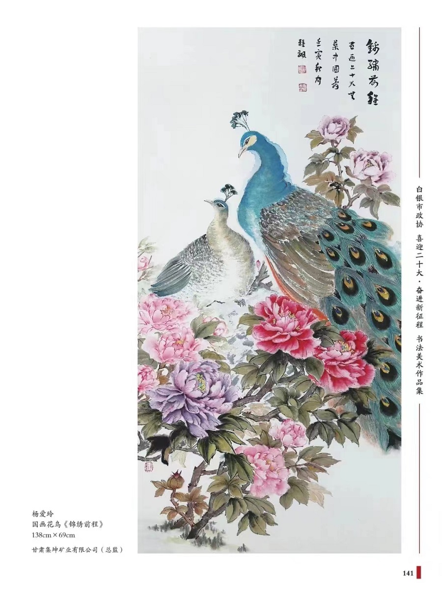 近日,由白银市政协主办的 “喜迎二十大 奋进新征程”书法美术作品展将在白银市政协书画院举办。民革白银市委会4位党员作品入展。其中市直属第一支部党员、民革白银市中山书画院院长、甘肃集坤矿业有限公司总监杨爱玲的国画花鸟《锦绣前程》,市直属第三小组党员、景泰县第一中学教师滕维九的行书对联《日暮香消》,市直属第一支部委员、甘肃省科技界书画摄影协会白银分会理事、白银区中心街社区卫生服务站站长李文明的国画花鸟《百年恰是风华正茂》和市直属第二支部主委、民革市委会三级主任科员李春丽的小楷条幅《习近平语录》等作品成功入展。