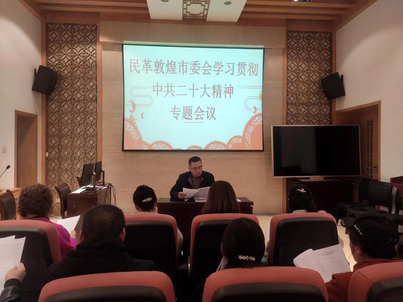 11月1日,民革敦煌市委会召开专题会议学习。民革酒泉市委会副主委、民革敦煌市委会主委李梅主持会议并讲话。民革敦煌市委会委员及民革敦煌市各支部主委、副主委参加会议。