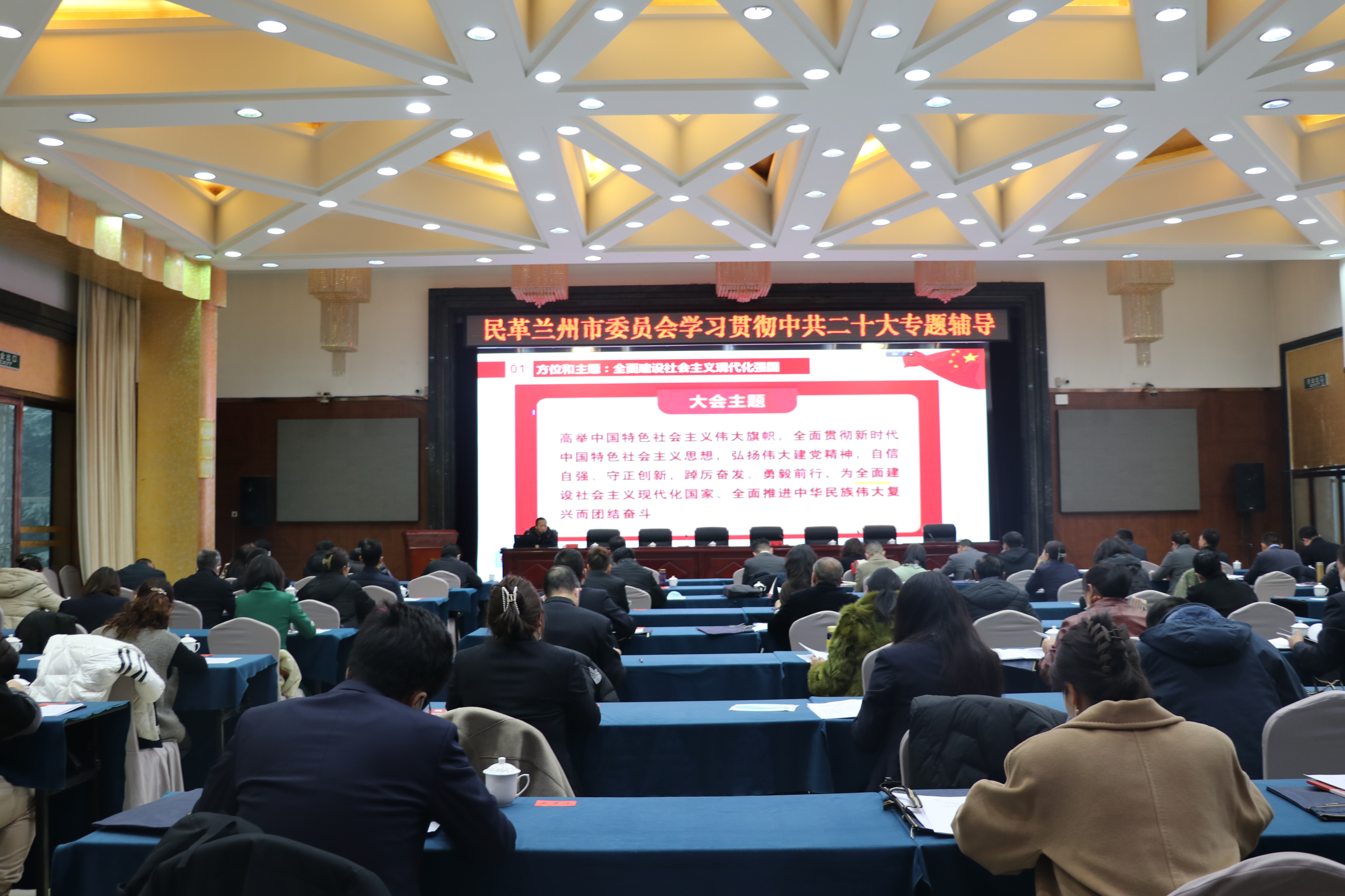 近日,民革兰州市委会举办学习宣传贯彻中共二十大精神专题培训。甘肃社会主义学院王凯教授应邀作中共二十大精神解读。民革兰州市第八届委员会全体委员、监督委员会成员、基层组织负责人、专委会主任、部分新党员参加培训。