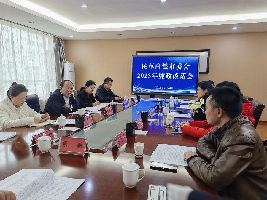 2月28日,民革白银市委会召开2023年度廉政谈话会。白银市政协副主席、民革白银市委会主委顾克伟主持会议,市委会副主委魏新玲、寇馨文,监督委员会委员、骨干党员、新党员代表和市委会机关干部参加会议。