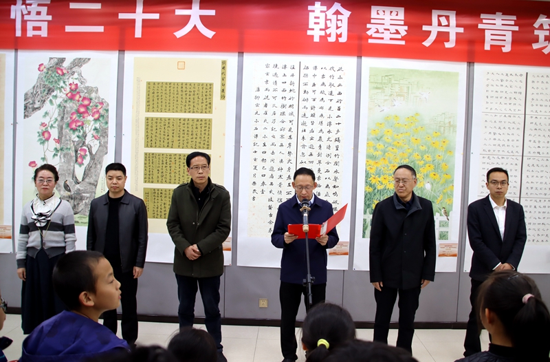 据悉,此次书画展共征集到民革党员及所联系书画爱好者作品120余幅,经相关书画专家精心遴选,展出60余幅书画作品。展出作品多以学思践悟中共二十大精神为主线,以提高政治认同、自觉接受中国共产党的领导为核心,以继承优良传统、弘扬时代旋律为基调,主题鲜明、意境深邃,展示了民革党员矢志不渝跟党走、携手奋进新时代的坚定信念和精神风貌。