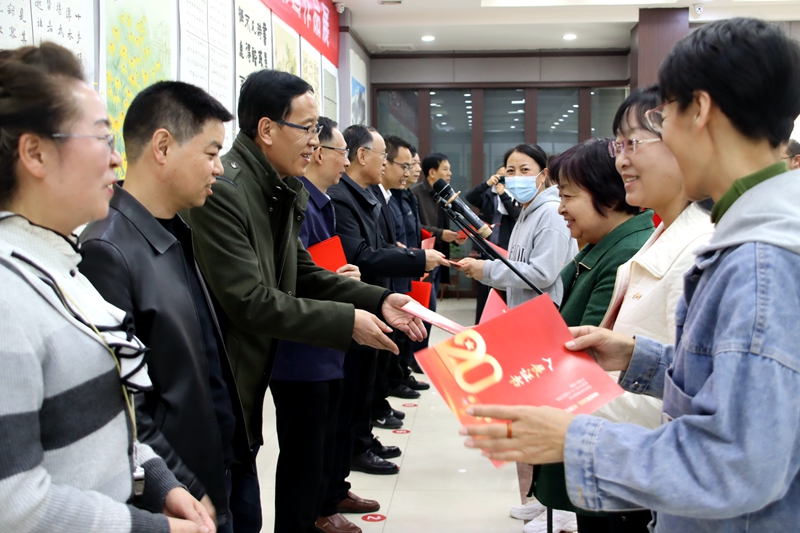 3月18日,民革定西市委会在定西市安定区美术馆举办“学思践悟二十大 翰墨丹青筑同心”书画作品展。定西市政协副主席、民革定西市委会主委刘永维出席书画展并致辞。中共定西市委统战部副部长杨振宇出席活动。民革定西市委会专职副主委王耀恒主持开展仪式,民革定西画院院长庞永泉介绍了画展筹备情况。中共定西市委统战部、民盟定西市委会、安定区美术馆的有关负责同志、入展作者等60余人参加开展仪式。
