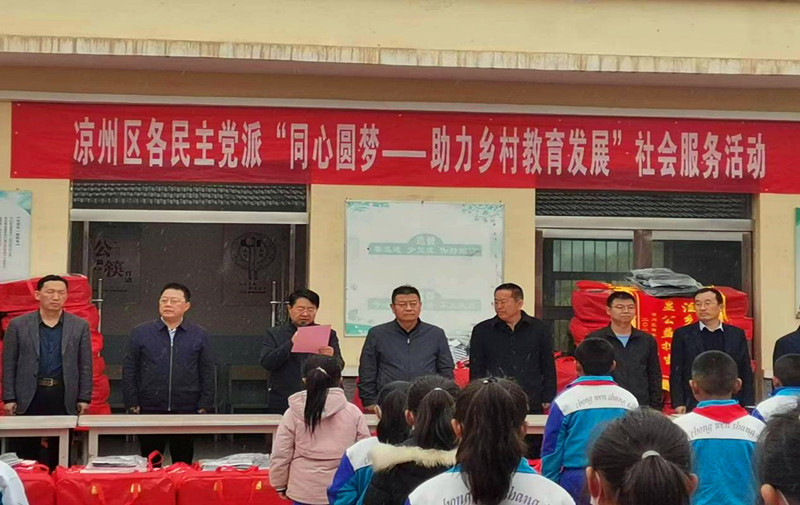 4月4日,民革武威市凉州区委会联合各民主党派凉州区委会,在黄羊镇大墩小学联合开展“同心圆梦--助力乡村教育发展”社会服务活动。凉州区各民主党派主委和4名民主党派医疗教育专家参加活动。