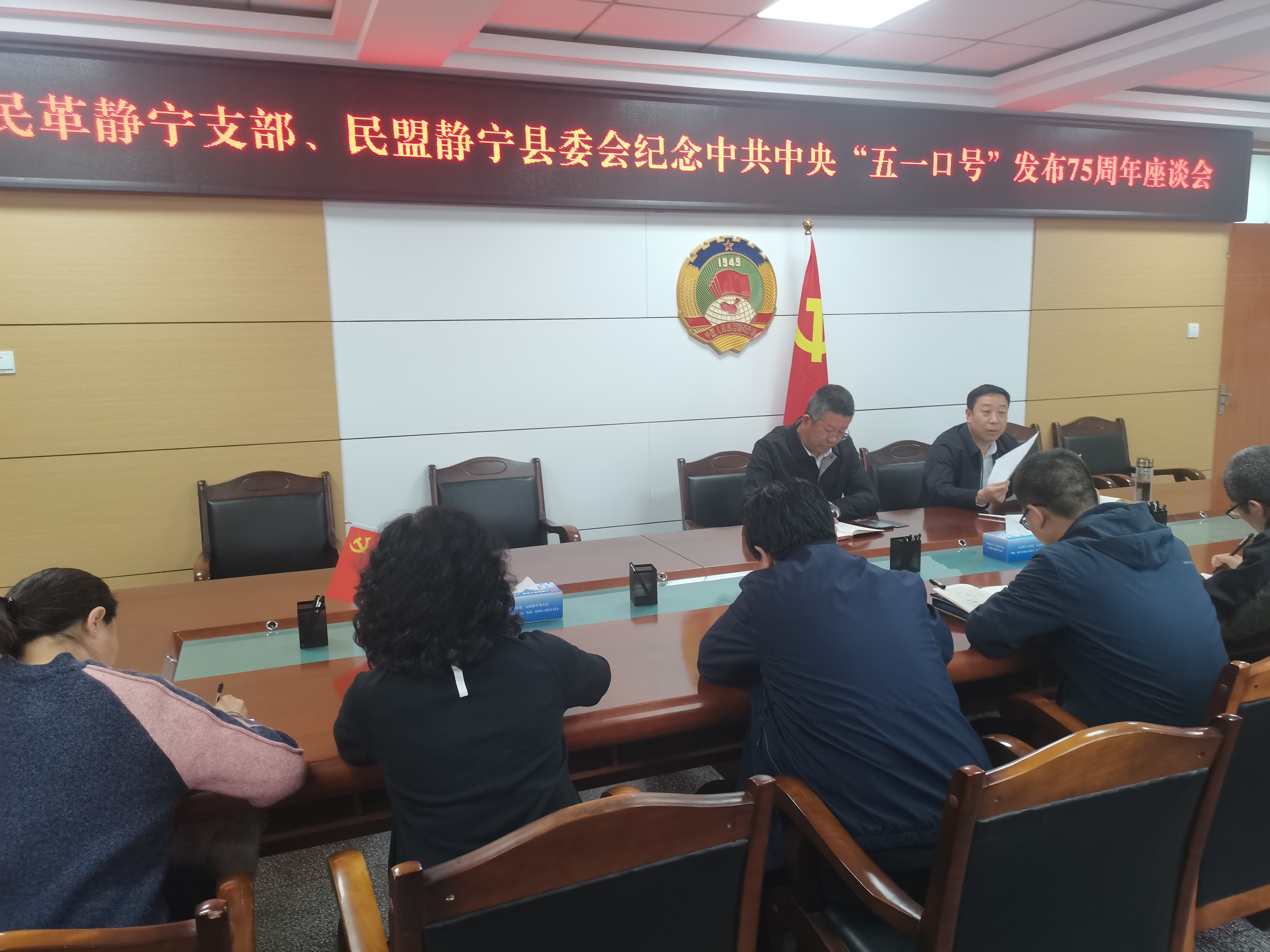 4月27日,民革平凉市委会静宁县支部、民盟平凉市静宁县委会联合召开纪念中共中央发布“五一口号”75周年座谈会。静宁县政协副主席、民革静宁县支部主委李玉军主持会议,静宁县政协副主席、民盟静宁县委会主委王永强出席会议。