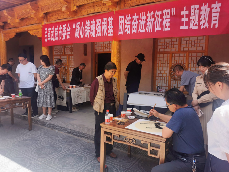 6月18日,民革武威市委会在凉州区四坝镇非遗民俗文化馆举办“凝心铸魂强根基、团结奋进新征程”主题教育书画笔会。民革武威市委会主委严世明出席活动,20余名民革党员参加活动,5名书画名家受邀参加笔会联谊。