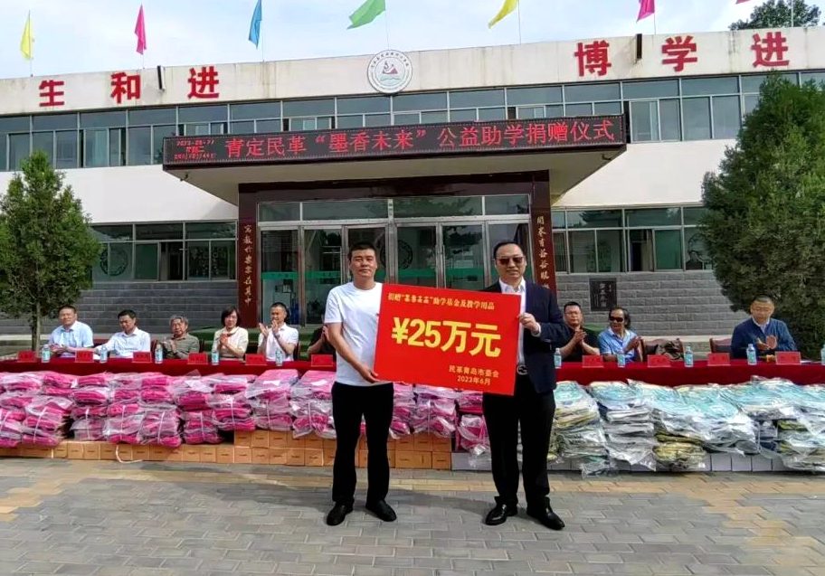 调研组一行先后深入渭源县清源镇河口学校、漳县新寺小学,了解学校建设、教育教学情况,看望受助学生。在渭源河口学校,青定民革举行了“墨香未来”公益助学捐赠和“青岛民革墨香未来公益助学基地”授牌仪式,青岛民革捐赠25万元的助学基金及教学用品,结对资助渭源、漳县87名困难学生。民革定西市委会向青岛市委会敬赠“墨香未来 情暖陇原”纪念牌,青岛宁德路小学与渭源河口学校签订友好协议,结成友好学校。双方就发挥青岛教育资源优势,实现教育资源共享,开展师生互动异地研学交流等进行了深入探讨交流。