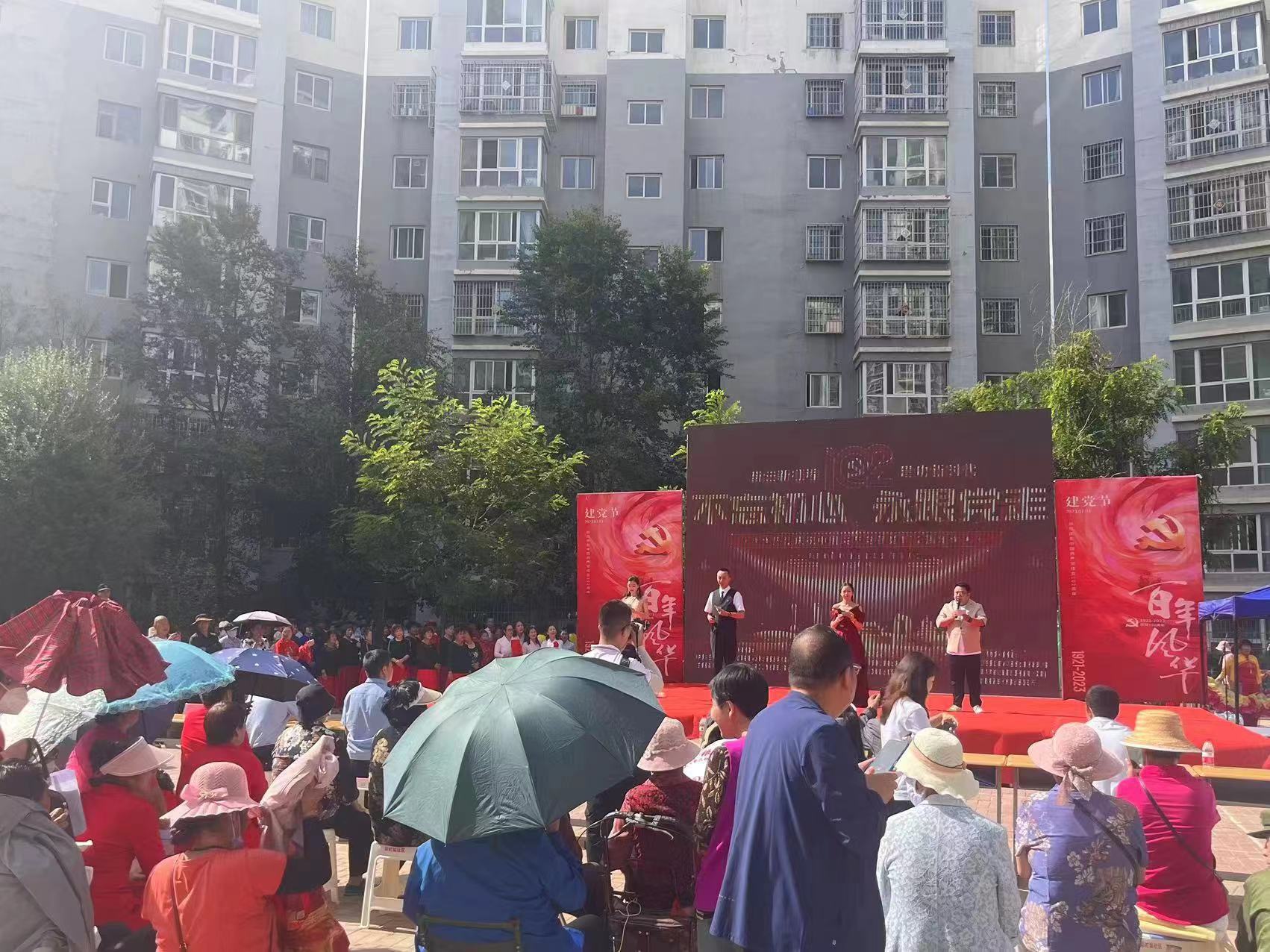 活动现场,社区文艺社团为现场群众表演了《我和我的祖国》演唱、《唱支山歌给党听》和《映山红》舞蹈、《山丹丹花开红艳艳》大合唱、《盛世中华》腰鼓等15个文艺节目。文艺汇演结束后,与会党员们观看了红色电影《建党伟业》,回顾了中国共产党在苦难中创立、在艰难中前行、在克难中壮大的恢弘历程。