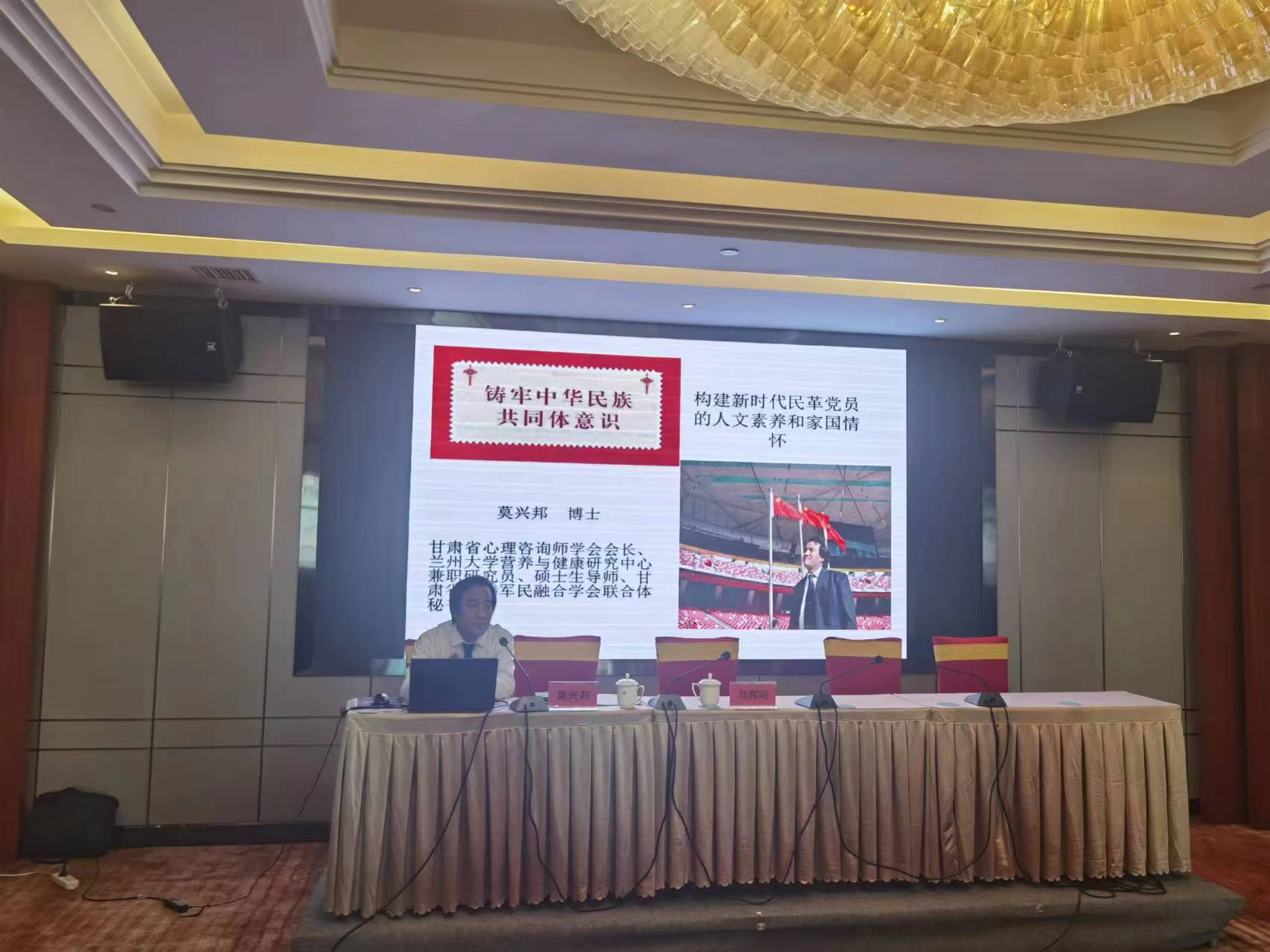 会议邀请民革甘肃省直十一支部主委、甘肃省心理咨询师学会会长莫兴邦为大家作了《铸牢中华民族共同体意识 构建新时代民革党员家国情怀》的专题讲座。