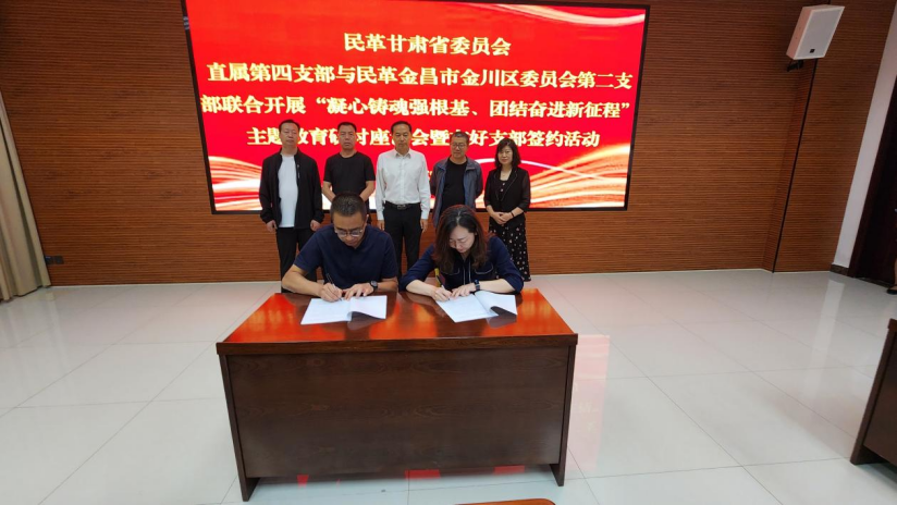 9月8日至10日,民革甘肃省委会直属第四支部联合民革金昌市金川区委会第二支部开展“凝心筑魂强根基、团结奋进新征程”主题教育研讨座谈会暨缔结友好支部签约活动。金昌市政协副主席、民革金昌市委会主委姜玉成,民革甘肃省委会组织处三级调研员汪少粱,金昌市委会专职副主委刘建华,民革甘肃省直四支部主委王永平,民革金川区委会主委孙世全,民革金昌市金川区二支部主委买铁瑛及30余名党员参加签约仪式。
