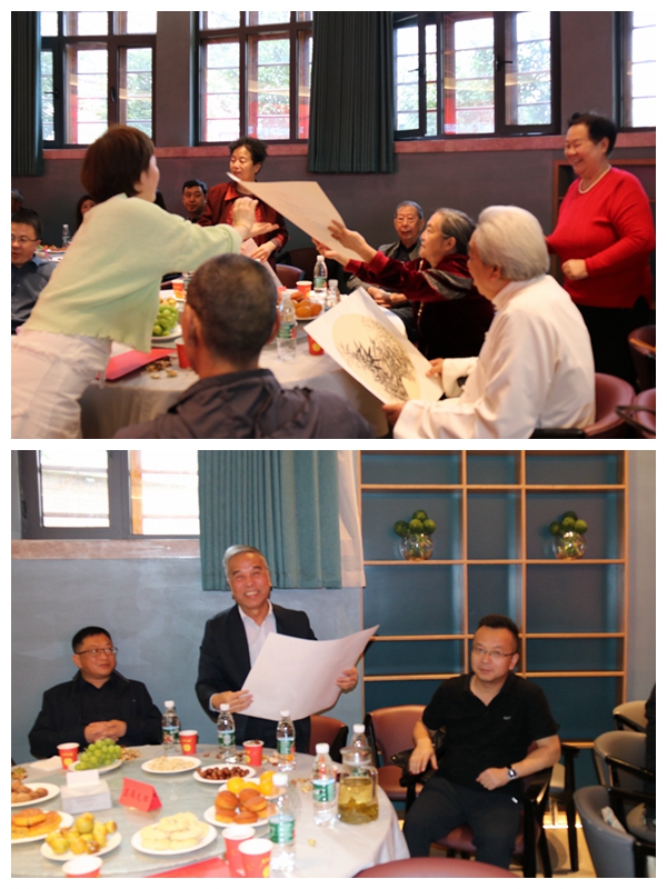 联谊会现场,民革党员和台胞台属围绕“凝心铸魂强根基、团结奋进新征程”主题教育编排了一系列文艺节目,舞蹈《盛世花开》,独唱《东方微笑》《幸福》,朗诵《海峡两岸盼团圆》,二胡独奏、川剧变脸等表演形式多样、内容丰富,赢得了大家阵阵掌声。在《唐诗里的中国》诗朗诵中,党员中的四位青年书画家现场创作了八幅绘画作品送到了台胞台属和老党员手中,表达着浓浓的关爱之情。活动中还穿插了主题教育知识互动抢答环节,在现场观众的积极热情参与下,场内气氛被推向高潮。
