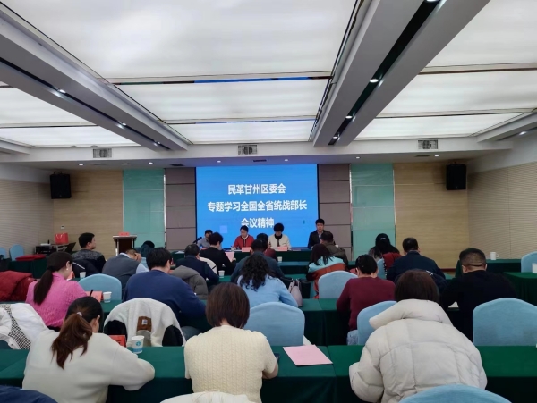 1月27日,民革张掖市甘州区委会召开学习会议,专题学习了全国、全省统战部长会议精神。民革甘州区委会主委张小玲主持会议,区委会党员参加会议。