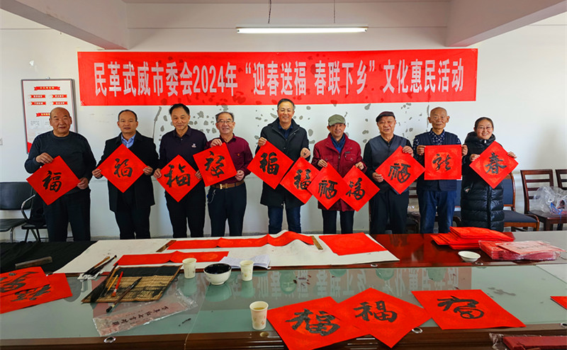 此次活动是民革武威市委会连续第8年开展“春联下乡”文化惠民活动,长期以来,民革武威市委会充分发挥特色优势,坚持进乡镇、进社区举办送春联活动,把民革的祝福传递到千家万户,不仅弘扬了传统文化、扩大了民革影响力,也为群众带去了浓浓年味。