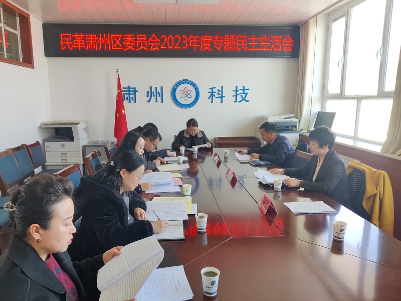 会议学习了酒泉市两会精神和肃州区两会精神,学习了中共酒泉市肃州区十六届三次会议精神;通报了本次民主生活会征求意见情况,王洋代表班子作对照检查,班子成员王洋、孔融、刘美玲逐一发言,龚玉金提交书面材料。