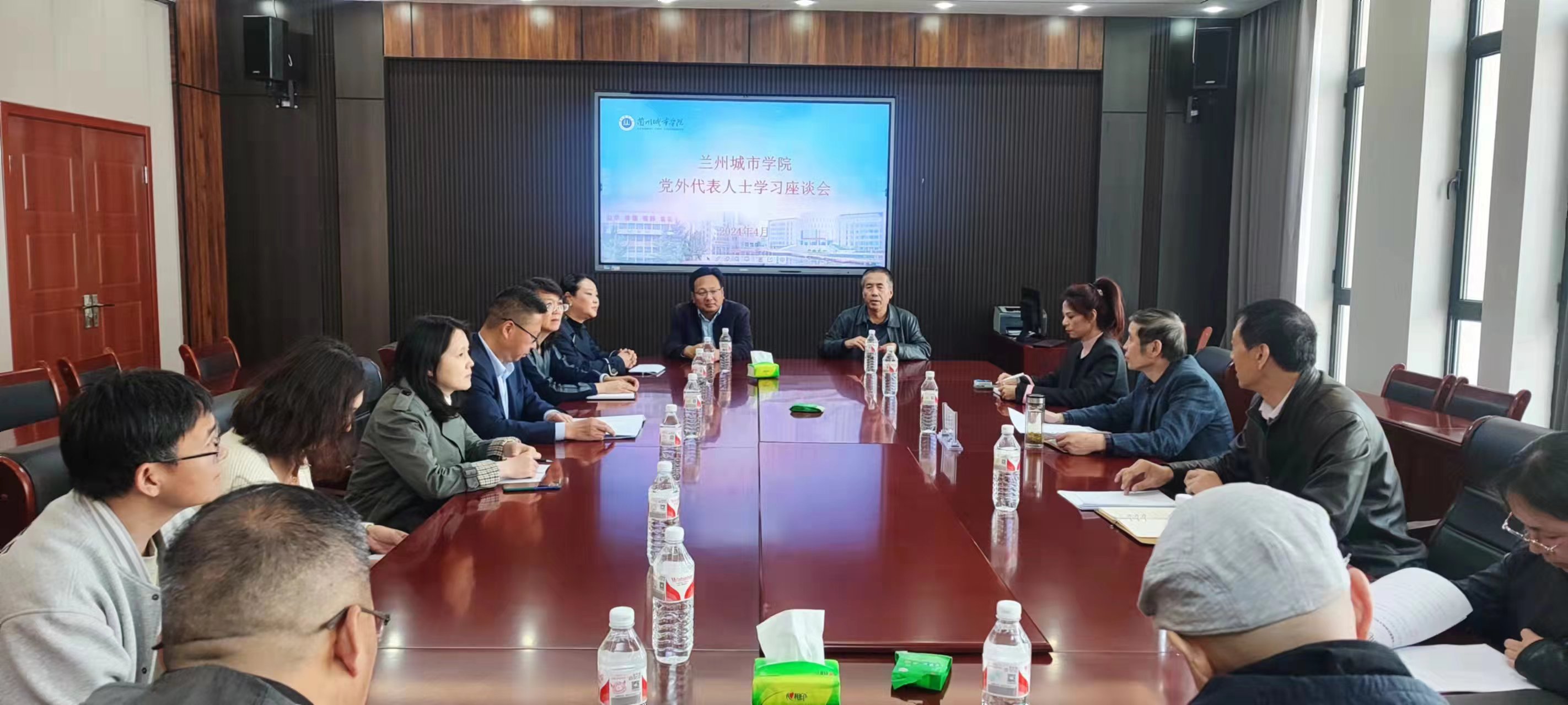 4月10日,兰州城市学院召开年度党外代表人士学习座谈会。学校党委副书记牟录贵出席座谈会并讲话,学校党委统战部常务副部长张龙主持会议。民革兰州城市学院支部主委宏永锋、民革党员汪松年等20人参加会议。