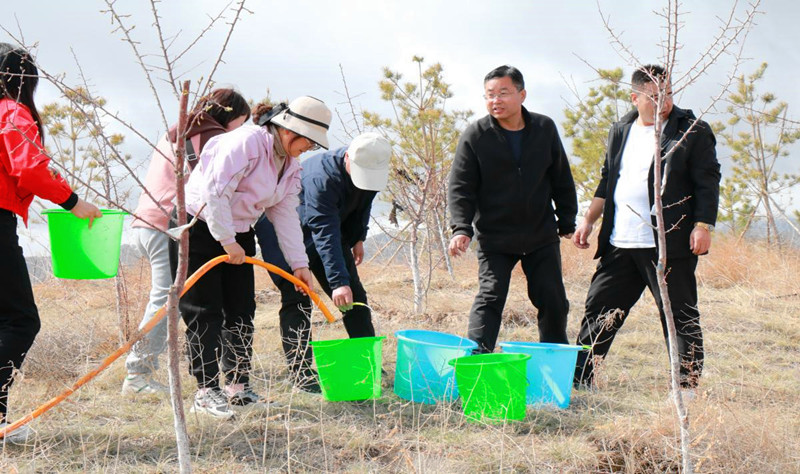 活动现场,党员们在“统战林”按照近处用水车水管放水浇,远处用水桶水盆接水浇等方式,顺利完成300多株山杏、樟子松的浇灌任务。在“同心林”保墒护绿现场,党员们在项目施工人员的指导下,三两成组,密切合作,或墩身覆膜,或覆土围堰……每道工序都做得认真细致,现场洋溢着团结协作、昂扬向上的融洽氛围。