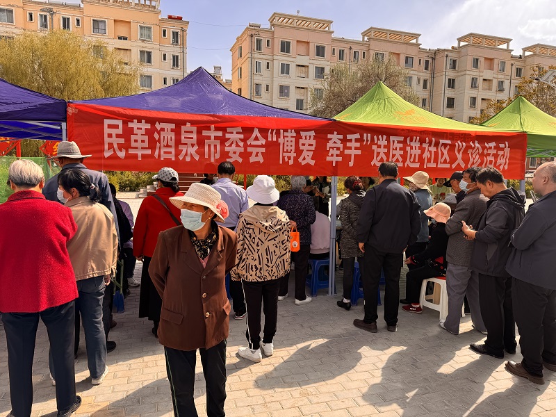 4月24日,民革酒泉市委会联合民革酒泉市直二支部走进肃州区东南街街道东关苑社区开展“博爱 牵手”送医进社区义诊活动。民革酒泉市委会副主委、酒泉市中医院普外科主任王伟,民革酒泉市直二支部主委、市医院药剂科主任陈边防参加义诊。
