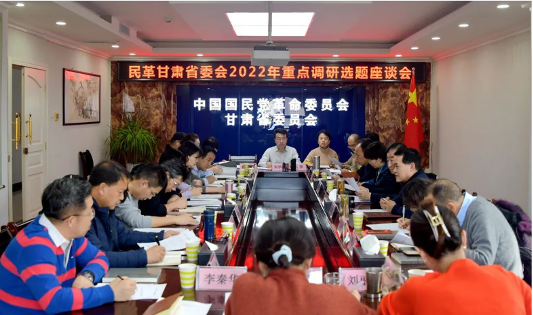 2月14日,民革甘肃省委会2022年重点调研选题座谈会在兰州召开。甘肃省政协副主席、民革甘肃省委会主委霍卫平,兰州市政协副主席、民革兰州市委会主委任丽梅出席会议。民革甘肃省委会专职副主委袁斌才主持会议。民革甘肃省第十二届委员会的11个专门委员会主任、副主任,省委会机关处室负责人,共30多人参加会议。