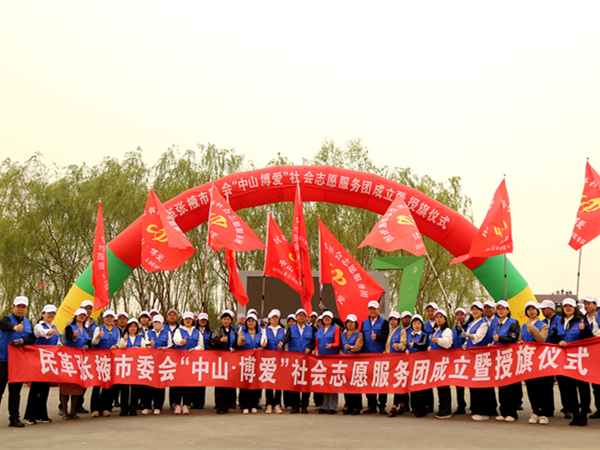 4月27日,民革张掖市委会在甘州区黑河林场举行“中山·博爱”社会志愿服务团成立暨授旗仪式。中共张掖市委统战部副部长杜春英、民革张掖市委会主委张兴锋出席仪式,民革张掖市委会全体委员及基层支部党员约100余人参加仪式。