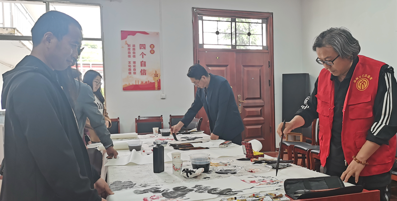 5月30日,为了深入学习宣传贯彻党的二十大精神,有形有感有效铸牢中华民族共同体意识,秦州区政协组织开展了第21个民族团结进步宣传月“文化科技卫生”三下乡活动。秦州区民革党员高全生、任美学参加此次活动,现场绘制若干国画作品、书法作品,助力民族团结进步“送书画”活动。