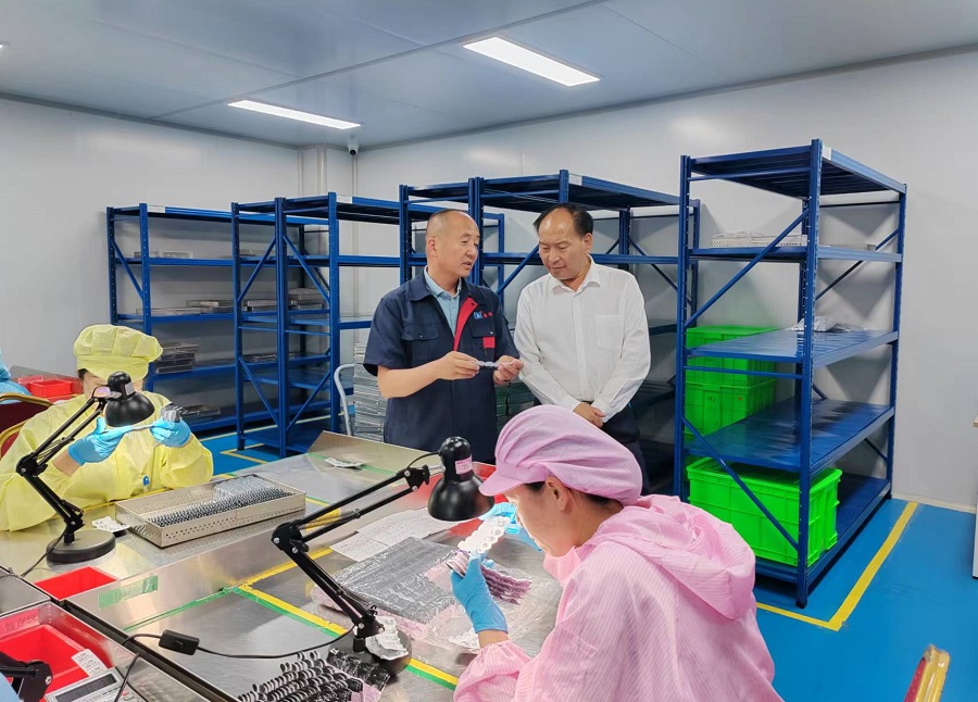 在为期2天的视察调研中,视察调研组先后深入京宇新药业有限公司、赛诺生物科技有限公司、利尔康生物有限公司、中科特医乳业有限公司、中检普泰检验检测有限公司、白银康寓信生物科技有限公司、甘肃康视达科技集团、甘肃康视丽隐形眼镜有限公司、甘肃皓天医药科技有限责任公司、甘肃东方钛业有限公司等企业进行实地调研。每到一处,调研组进车间、察生产、问发展,详细了解企业生产运行、项目建设和科技研发等情况,并就企业发展中存在的引才留才、产业链优化发展等堵点卡点问题进行了探讨交流,对企业探索多元化发展、生产与研发结合、生产工艺优化等方面提出意见建议。