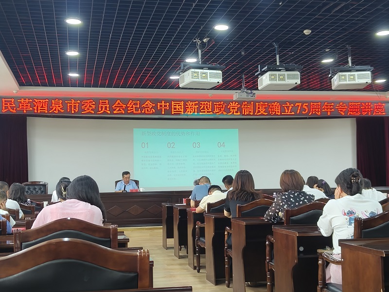 为庆祝新中国成立75周年、纪念中国新型政党制度确立75周年,7月20日,民革酒泉市委员会举办纪念中国新型政党制度确立75周年专题讲座。酒泉市副市长、民革酒泉市委会主委靳巧荣出席活动。
